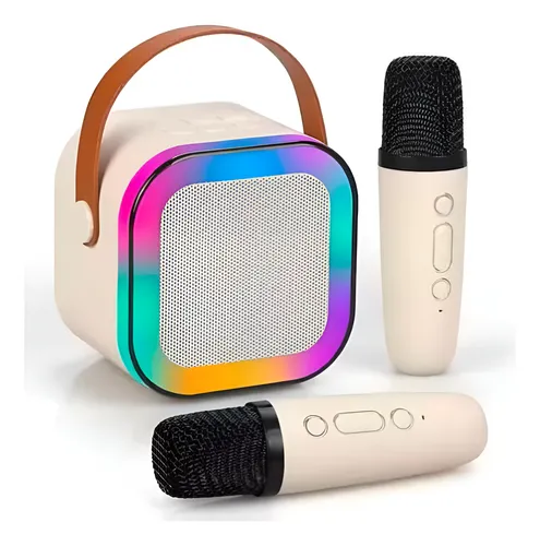 Parlante Bluetooth Luz Portátil Usb + 2 Microfonos Karaoke